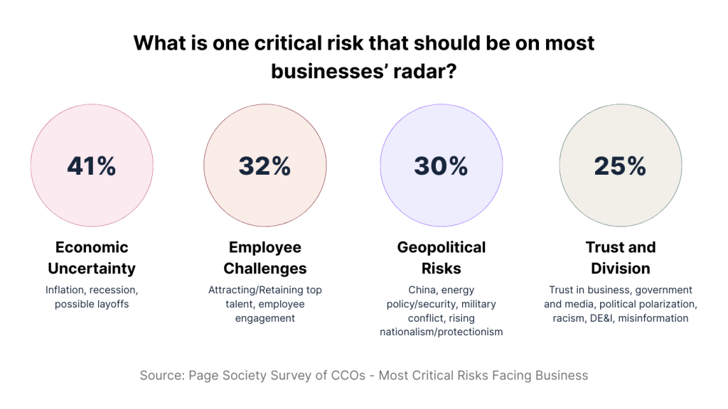 During the preparation for the World Economic Forum’s Annual Meeting, the Page Society surveyed its members on the most critical business risks for 2023. Attracting and retaining employees ranked as the second-highest risk — above geopolitical instability, inflation, and supply chain disruption. That ranking reflects a fundamental shift: talent has become a board-level concern.