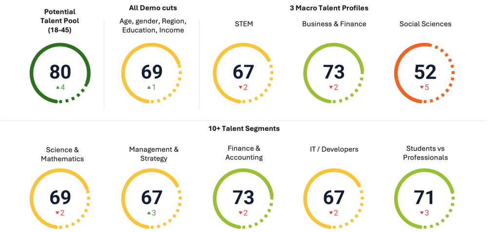 The ability to attract talent reliably — particularly in highly competitive segments like AI, tech, and digital — requires more than a strong EVP on paper. It requires knowing, in real time, how your employer brand is actually perceived by the specific talent segments you are trying to reach.