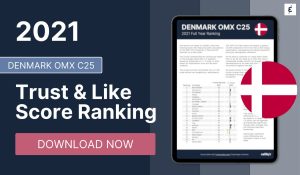 Caliber publishes the Trust & Like Score Rankings annually in January/February, reflecting results from the full previous calendar year. As Caliber’s flagship ranking, the TLS offers the most extensive historical record of reputation trends across companies listed on the OMX C25 Index. Earlier data or company-specific insights as well as additional results are available upon request.