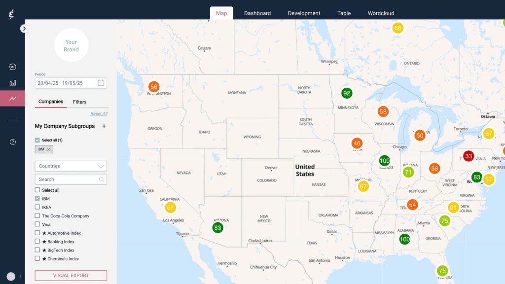 The score updates daily, giving companies near real-time visibility into changes in public sentiment.